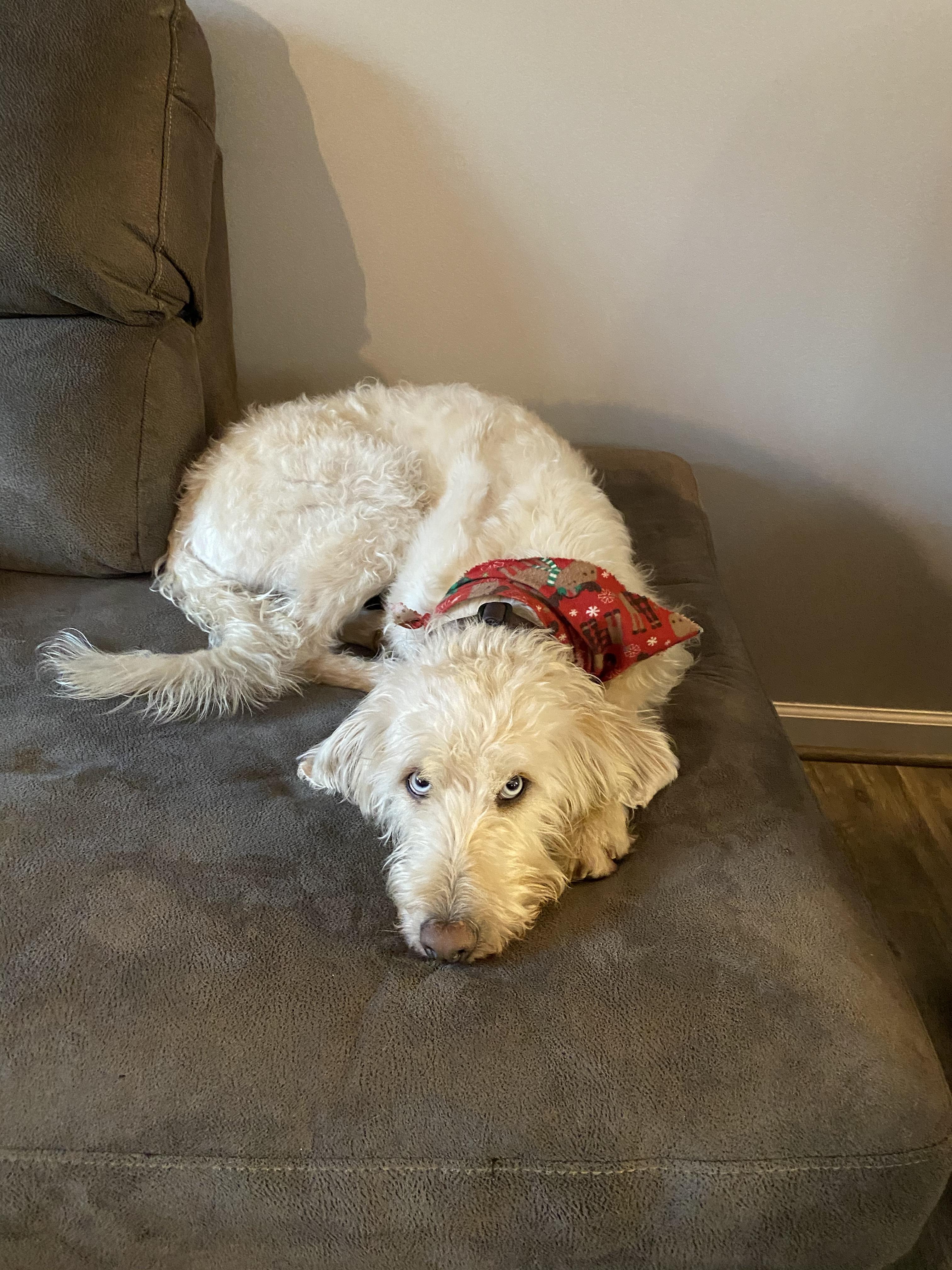 Ember is a female Labradoodle. Carefully selected as a great representative of her breed, Tyler decided to make her part of their program. Tyler has passed Good Dog’s screening process, which involved a review of their breeding practices, environment, and the mental and physical health of their dogs.