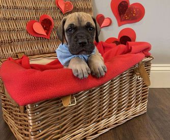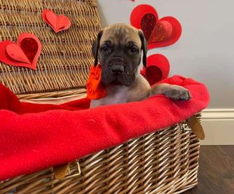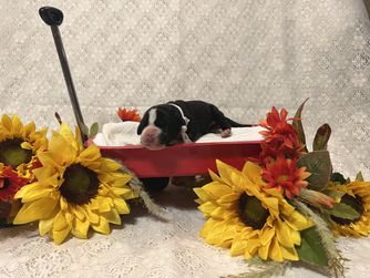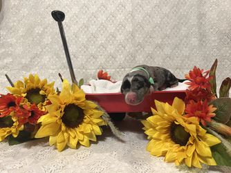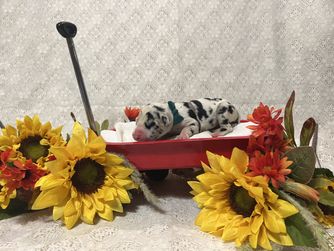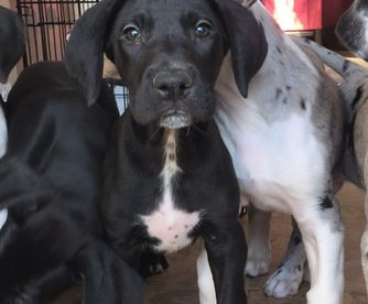 Our puppies include fawn, harlequin, mantle, and merle. Colors will vary depending on the parent dogs.