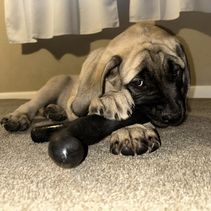 Never met a happier dog in all my decades - Not only is he a naturally joyful English Mastiff, he's even keeled, attentive, well-socialized from the get go, and a loyal canine extension. Much thanks and kudos to Brent and Shari for all their amazing work!