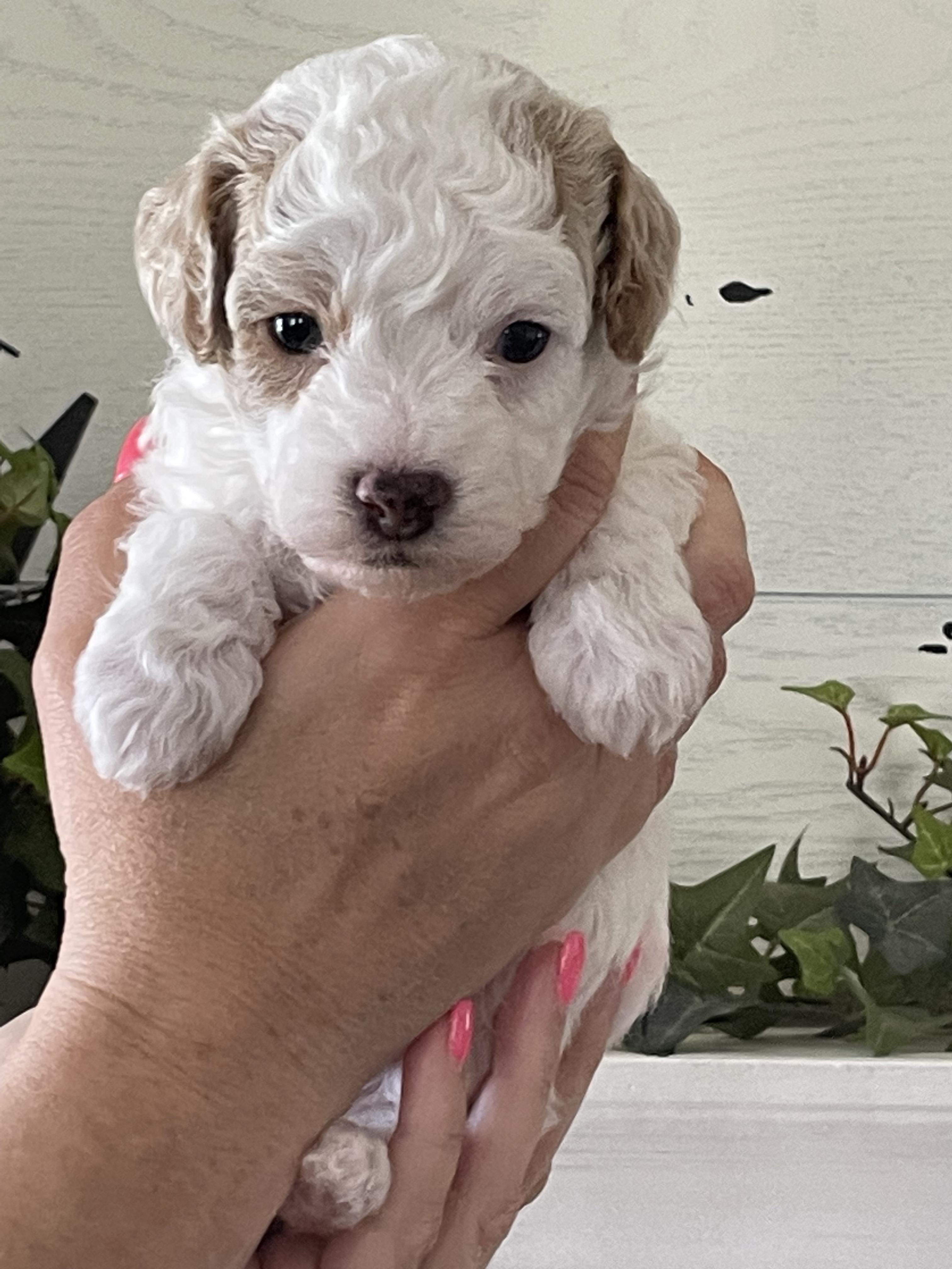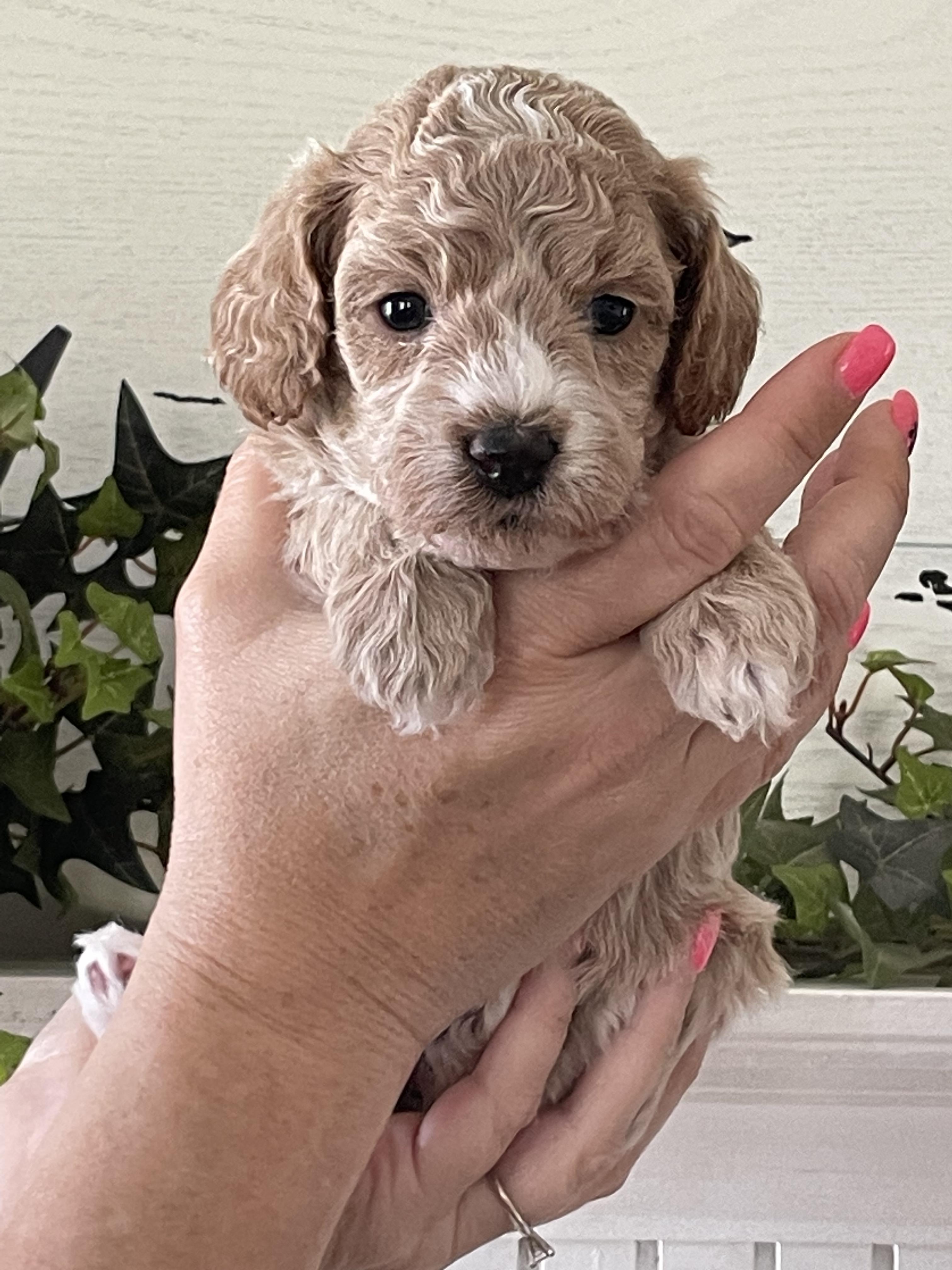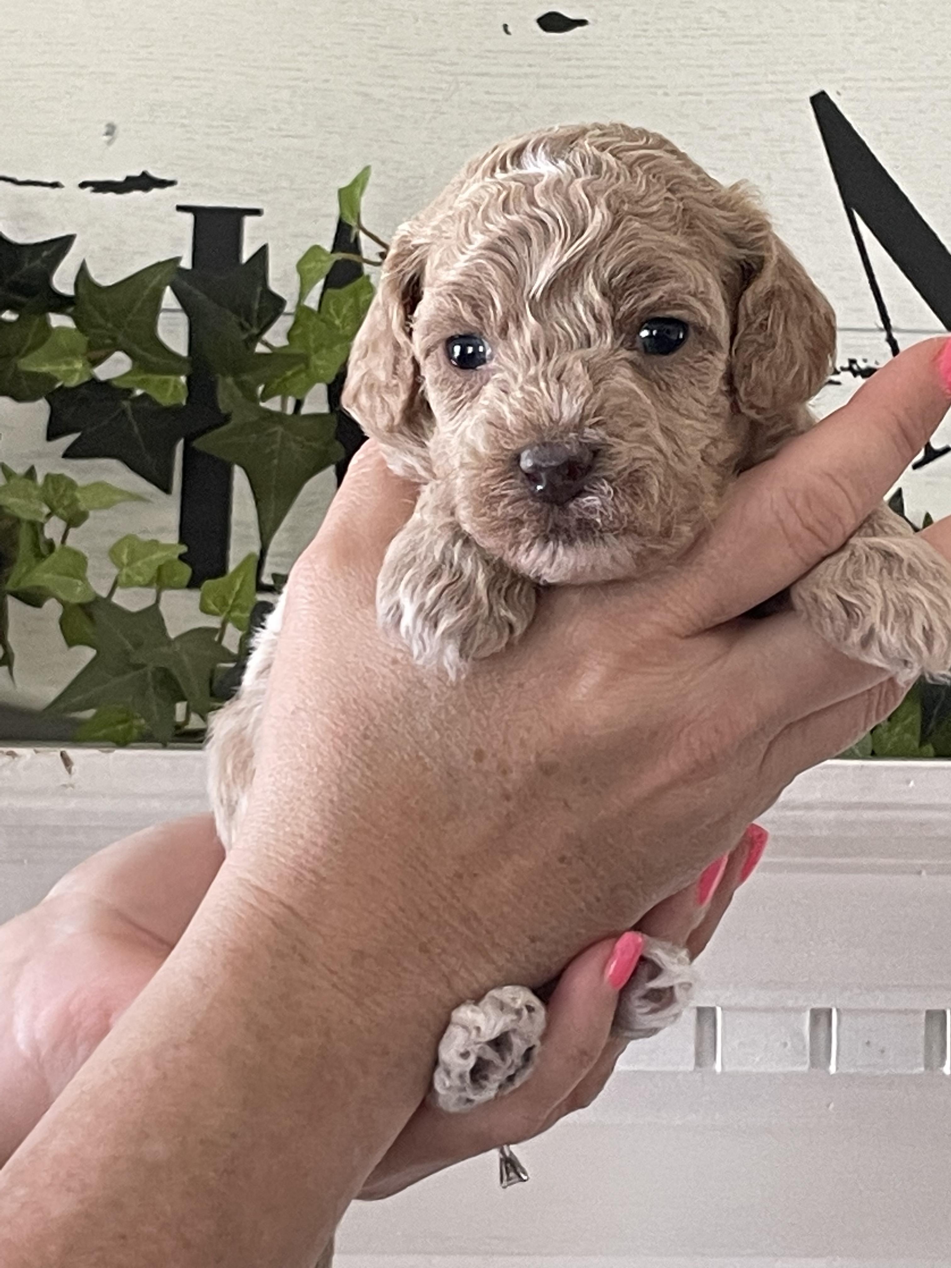 Our Goldendoodle puppies include red and parti. Labradoodle puppies include red, apricot, and cream. Colors will vary depending on the parent dogs.