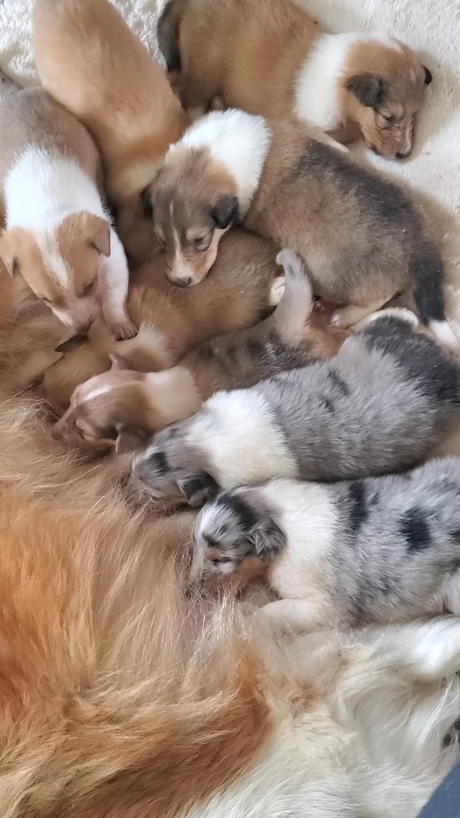 Our Collie puppies include sable and white, black white and tan, and blue merle. Australian Cattle Dog puppies include blue mottled, red mottled, and blue. Colors will vary depending on the parent dogs.