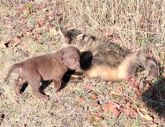 Recon is a male Chesapeake Bay Retriever. Carefully selected as a great representative of his breed, Erica decided to make him part of their program. Erica has passed Good Dog’s screening process, which involved a review of their breeding practices, environment, and the mental and physical health of their dogs.