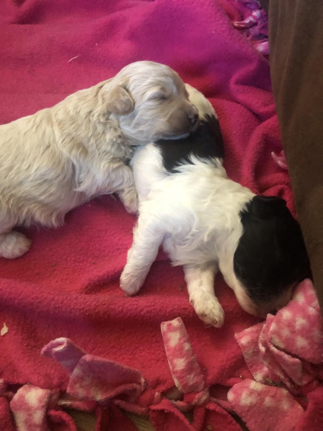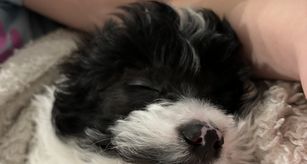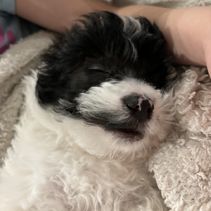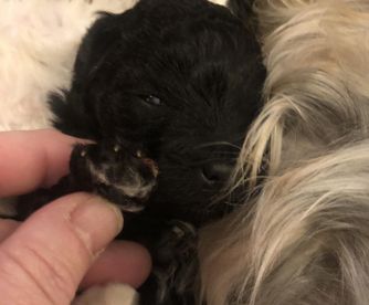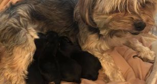 BB is the sweetest Yorkipoo we have ever had. Dainty and loving, she gives the sweetest hugs. She's a loving mama, but also let's her mama in to help with her babies. They make a darling pair. Papa Enzo gets in to help when he can.