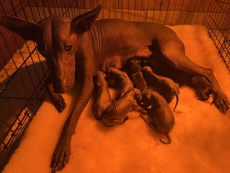 Our puppies have hairless coats. Coat types may vary depending on the parent dogs.