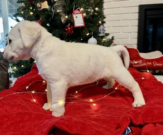“Puppies have a complete health check , first shots, deworming, Akc paperwork, lineage… Great pedigrees proven lines with over 4 generation in the last 10 years alone… All breeding dams and sires have had their health clearances which include OFA and genetic testing Heath clearances … for tinker the dam she has excellent hips sire Joe has good… Dogs/puppies cleared of DM,CNM,EIC,PRCD-PRA, Cystinuria genetic testing OFA PROGRAM and many more .. may be a difference in price for older puppies or pick of litter. Deposits are $300 per puppy and are non-refundable but transferable to another litter if a problem arises. Please make sure you are ready to make a purchase. Your deposit holds your place in line and that puppy is considered sold when the deposit is placed. If there is no puppy available you deposit will move to a future litter. If for some reason you need to cancel please contact us as soon as possible and we will move your deposit to a future litter. The deposit organizes and assures truly committed buyers priority in purchasing a puppy.”