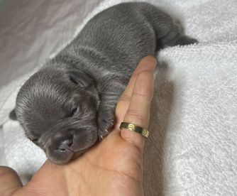 Our puppies are blue. Colors will vary depending on the parent dogs.