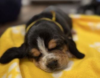 Our puppies include lemon and white and black brown and white. Colors will vary depending on the parent dogs.