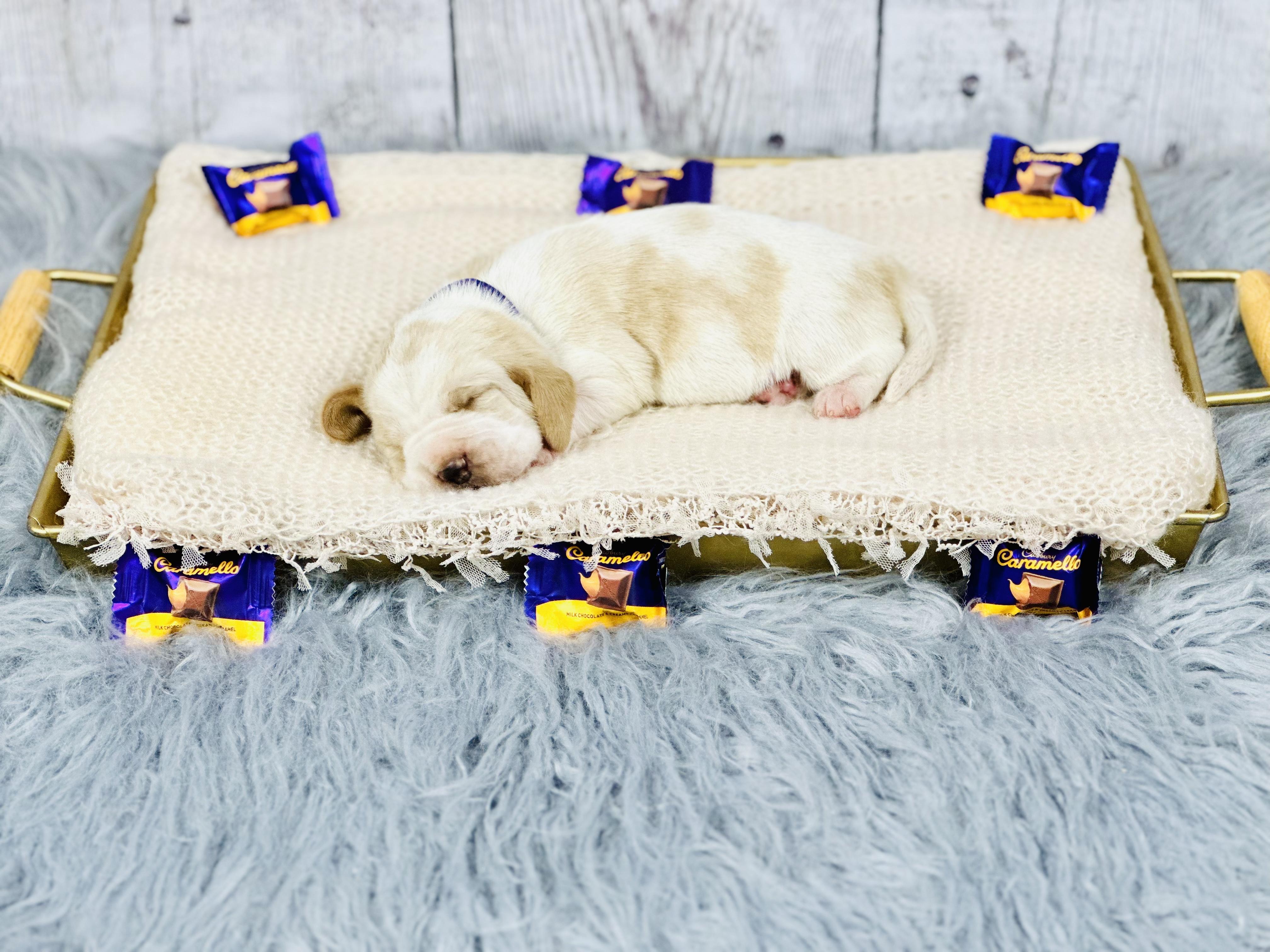 Our puppies include black and brown, black brown and white, red and white, and lemon and white. Colors will vary depending on the parent dogs.