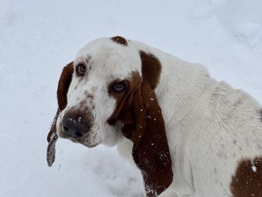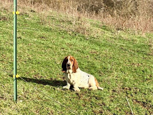 Our dam is a beautiful, well-structured Basset Hound with the classic long ears, soulful eyes, and gentle expression that the breed is loved for. She has a balanced frame, strong bone, and a smooth, flowing movement that reflects her excellent conformation.