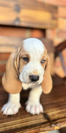 Our sire is a classic example of the Basset Hound breed, with a sturdy, well-balanced frame and a gentle, loyal temperament. He carries the signature long, low build with heavy bone, deep chest, and strong legs that give him endurance and stability. His long ears, soulful eyes, and loose skin with expressive wrinkles give him that unmistakable Basset charm.