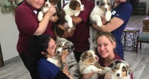 Our puppies include black, red merle, blue merle, and red. Colors will vary depending on the parent dogs.