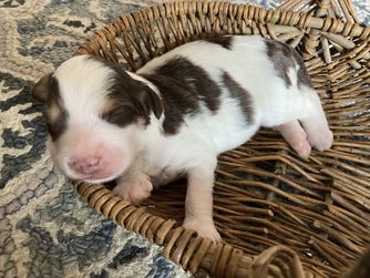 Our puppies include red, black and white, tri-color, and merle. Colors will vary depending on the parent dogs.