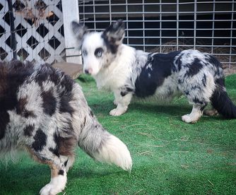 Our American Corgi puppies include sable merle and white, sable and white, red merle and white, fawn, brindle and white, brindle merle and white, blue merle and white, black and white, and black and tan. Pembroke Welsh Corgi puppies include fawn, red, sable, white and red, blue, and black and tan. Cardigan Welsh Corgi puppies include sable and white, brindle merle and white, blue merle and white, brindle and white, and black and white. Colors will vary depending on the parent dogs.