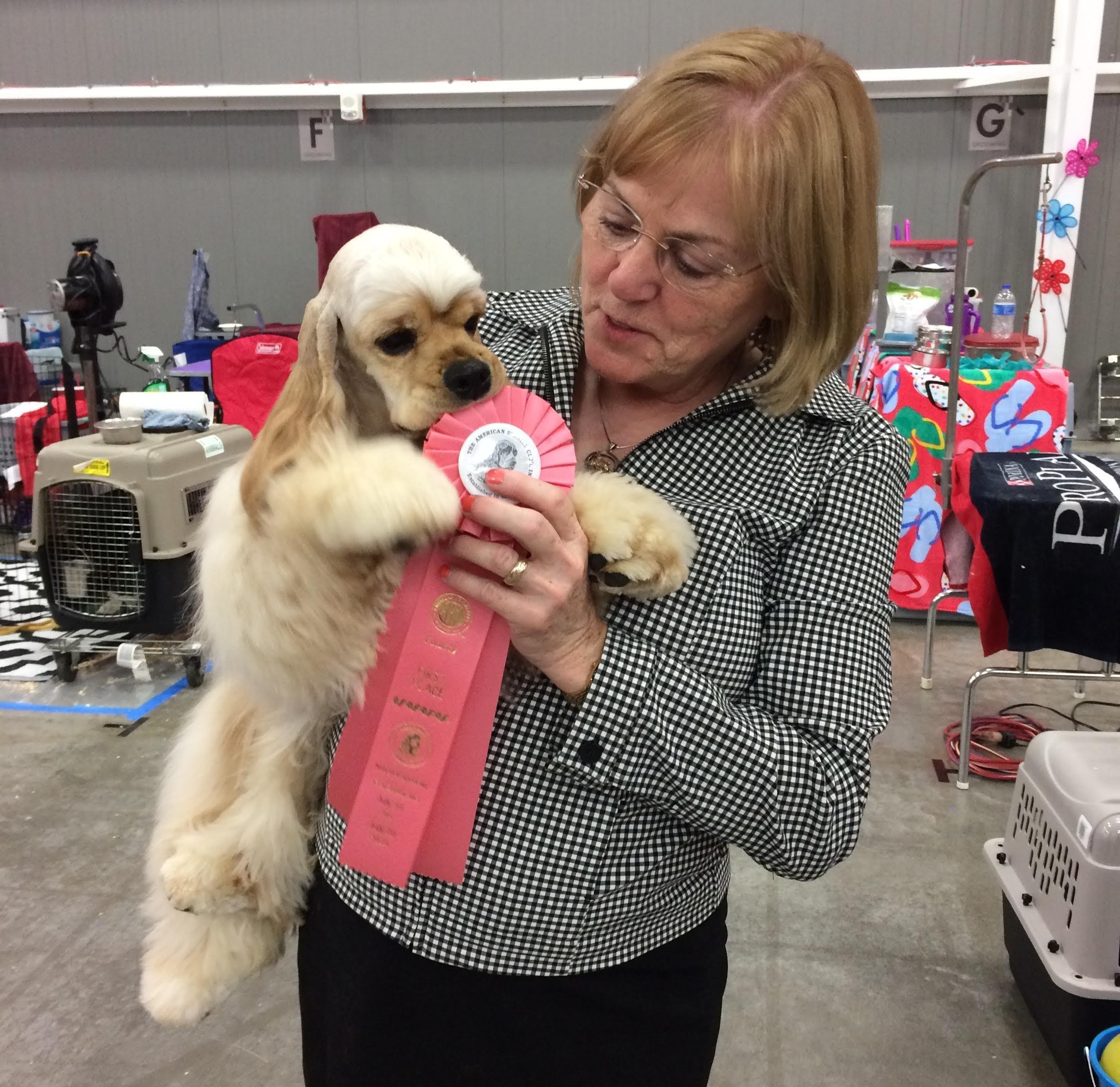 Pink is a female Cocker Spaniel. Carefully selected as a great representative of her breed, Michelle decided to make her part of their program. Michelle has passed Good Dog’s screening process, which involved a review of their breeding practices, environment, and the mental and physical health of their dogs.