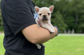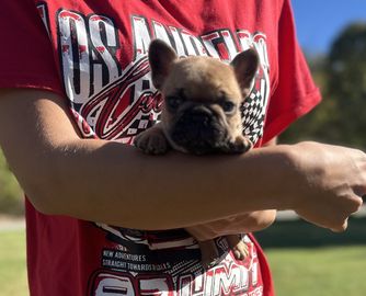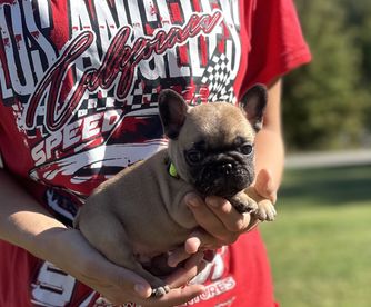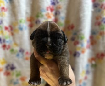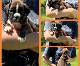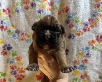 Our Boxer puppies include fawn and brindle. French Bulldog puppies include brindle, cream, and fawn. Colors will vary depending on the parent dogs.
