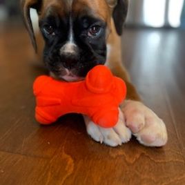 Freya is a female Boxer. Carefully selected as a great representative of her breed, Amy decided to make her part of their program. Amy has passed Good Dog’s screening process, which involved a review of their breeding practices, environment, and the mental and physical health of their dogs.