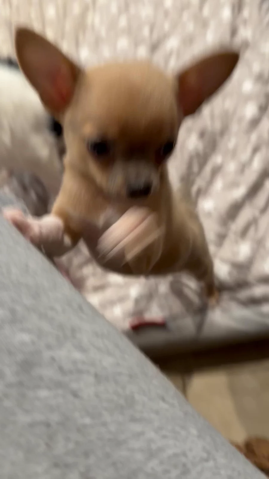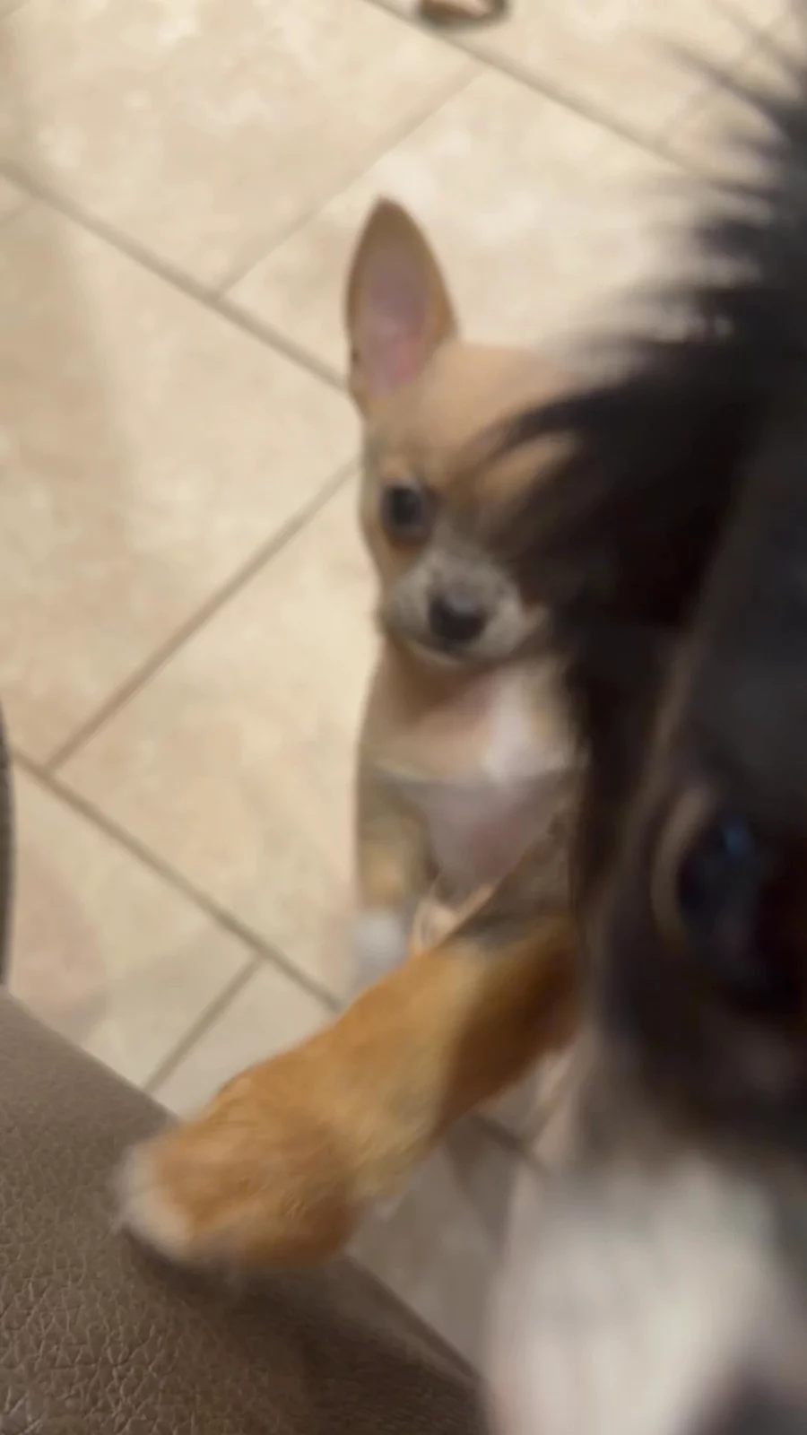 Beavis is a smooth coat chihuahua! He is funny as heck and loves to play catch! He is a fast runner and a huge mamas boy!