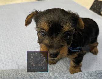 Our Yorkies are never left alone in a kennel all day. They interact with humans and receive special attention as they should. They are accustomed to loud sounds, different people's voices, and a variety of noises. Our Yorkies are showered with as much love as possible.