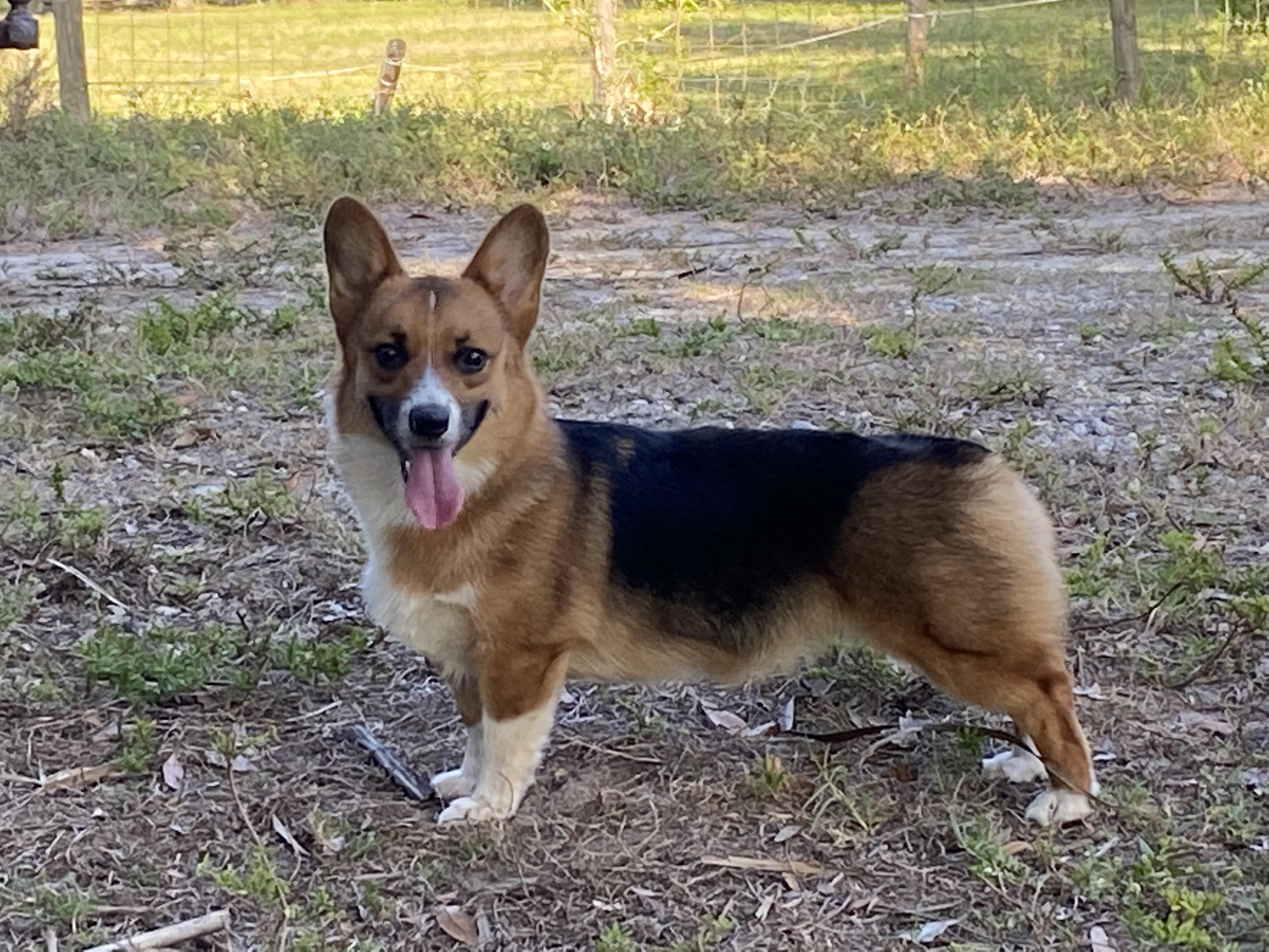 Cinder is a female Pembroke Welsh Corgi. Carefully selected as a great representative of her breed, Debby decided to make her part of their program. Debby has passed Good Dog’s screening process, which involved a review of their breeding practices, environment, and the mental and physical health of their dogs.