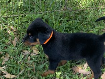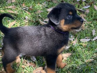 Our German Shepherd puppies include sable, black, black and tan, bi-color, and black and red. Rottweiler puppies are black and mahogany. Pembroke Welsh Corgi puppies are sable. Colors will vary depending on the parent dogs.