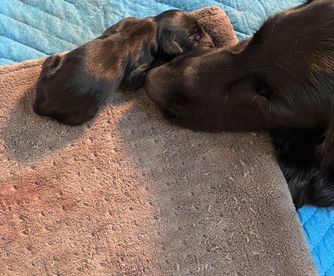 I'm Michelle H., the breeder behind Blixthalka Flat-Coated Retrievers located in Rogers, MN. We are a small hobby kennel that is dedicated to quality Flat-Coated Retrievers. We carefully select our dogs for health, type, temperament, working ability, and to be family-friendly. We truly love what we do at Blixthalka Flat-Coated Retrievers.