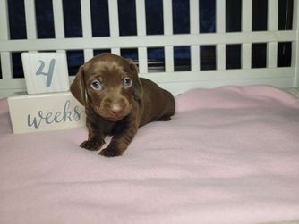 Lady is a female Dachshund. Carefully selected as a great representative of her breed, Ashley decided to make her part of their program. Ashley has passed Good Dog’s screening process, which involved a review of their breeding practices, environment, and the mental and physical health of their dogs.