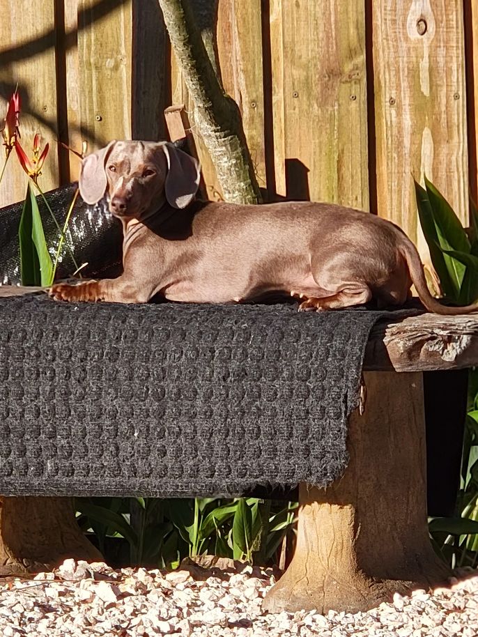 Lilo is a female Dachshund. Carefully selected as a great representative of her breed, Ashley decided to make her part of their program. Ashley has passed Good Dog’s screening process, which involved a review of their breeding practices, environment, and the mental and physical health of their dogs.