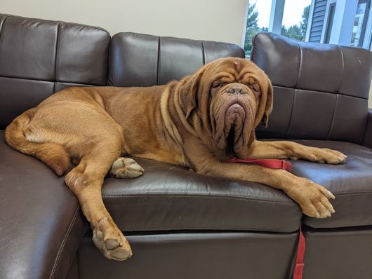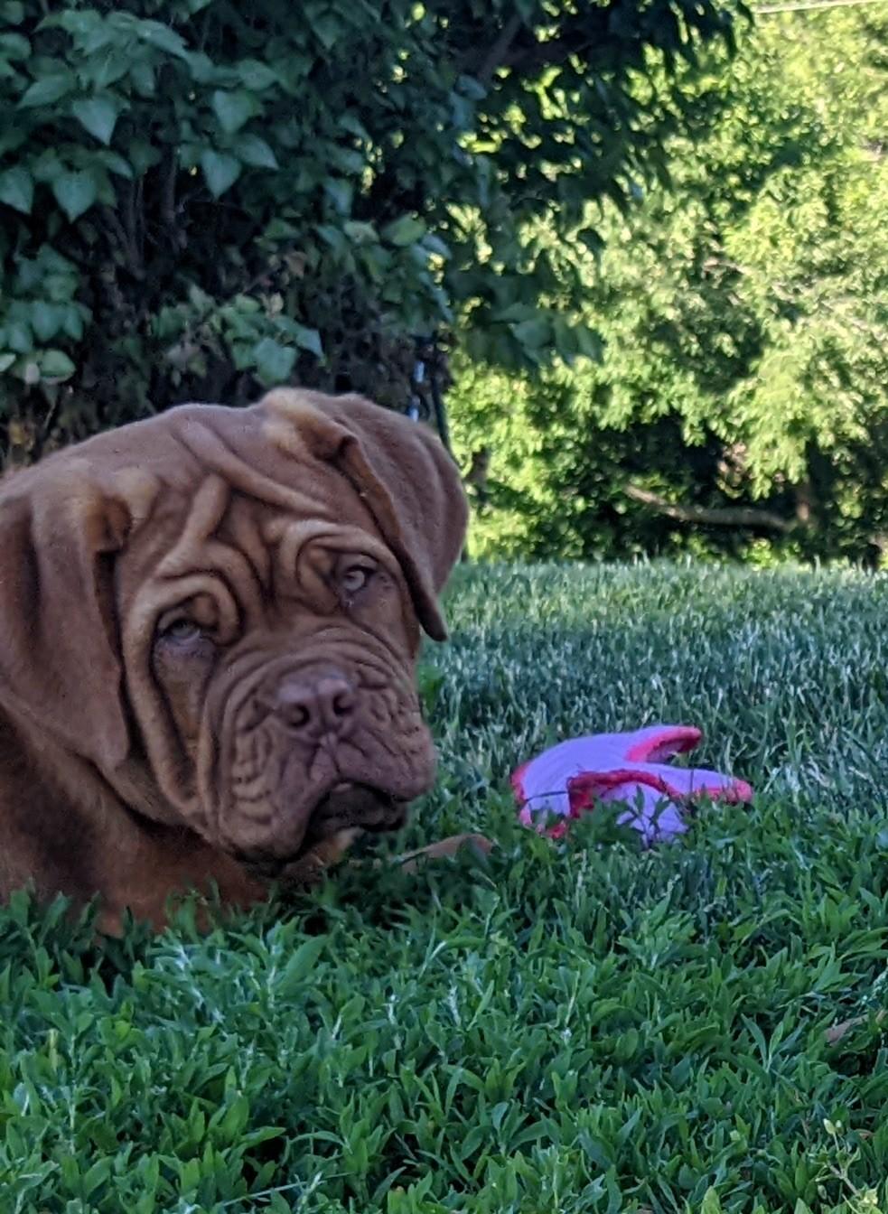 Zeni is an outgoing, Dogue de bordeaux well socialized boy who is current on all vaccinations, rabies, and microchips. Create trained, potty trained, collarish trained, love baths, and are looking for his new home.❤️