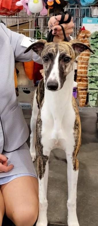 Pearl is a female Whippet. Carefully selected as a great representative of her breed, Toni decided to make her part of their program. Toni has passed Good Dog’s screening process, which involved a review of their breeding practices, environment, and the mental and physical health of their dogs.