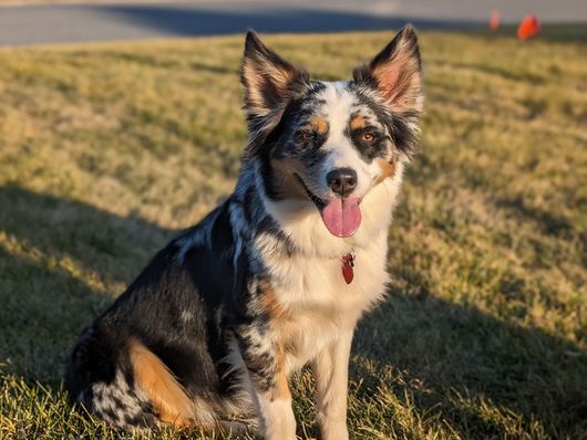 Rocky is a kids favorite around our house. We host gatherings a lot and you can always find Rocky playing with the kiddos! He's a very laid back Aussie who would probably rather take a nap than learn new tricks.. but don't let him fool you, he is one bright cookie! Rocky absolutely loves hiking and playing in creeks, pools, and oceans! He's a very playful guy with looks that could kill!😍