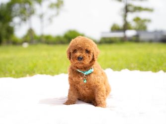 Poodle puppies include apricot and red. Colors will vary depending on the parent dogs.