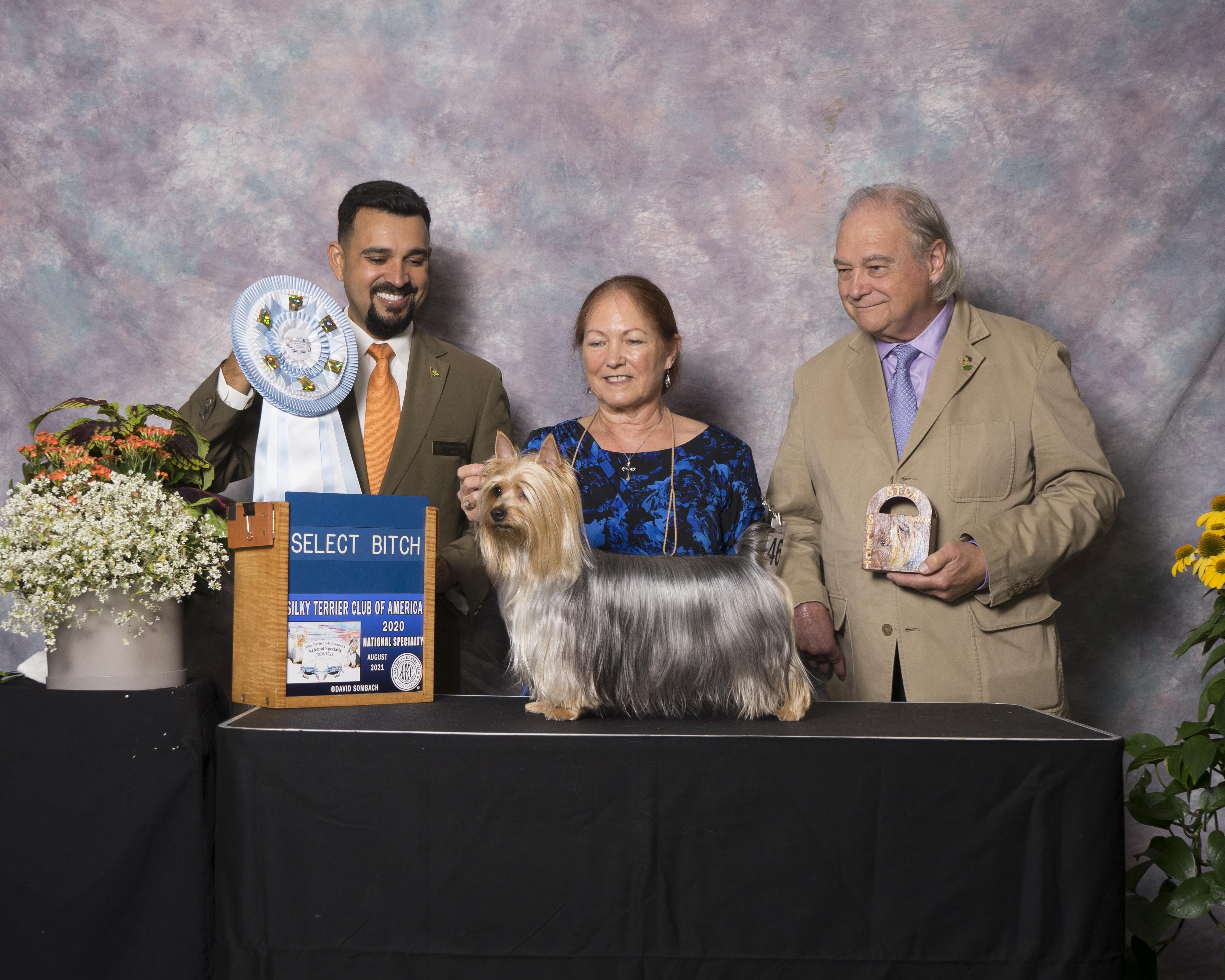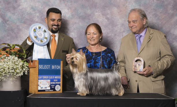 In 2015 I started showing and breeding Silky Terriers. I purchased my foundation female Tawny Mist Blu Diamonds By Loren, Sophia, from the #1 top Silky Terrier breeder in the US and recognized worldwide. She became an AKC Grand Champion and International Champion with Best In Show, Reserve Best In Show as well as multiple Group placements. She has produced a Champion and Grand Champions.