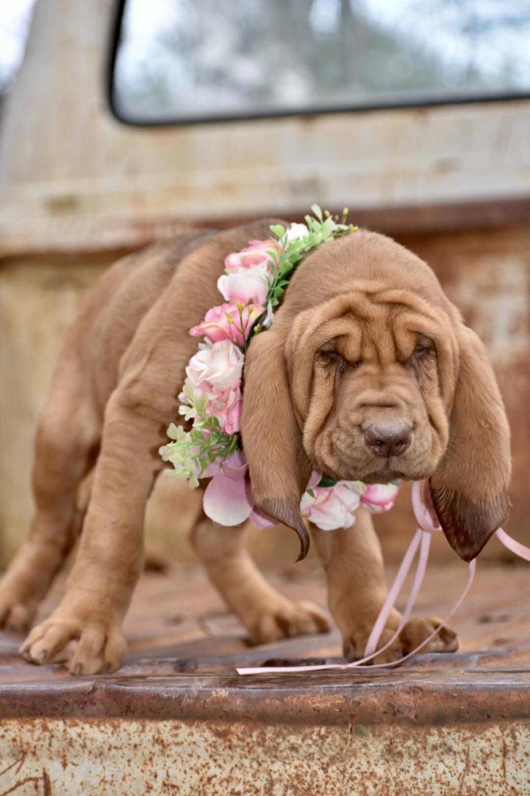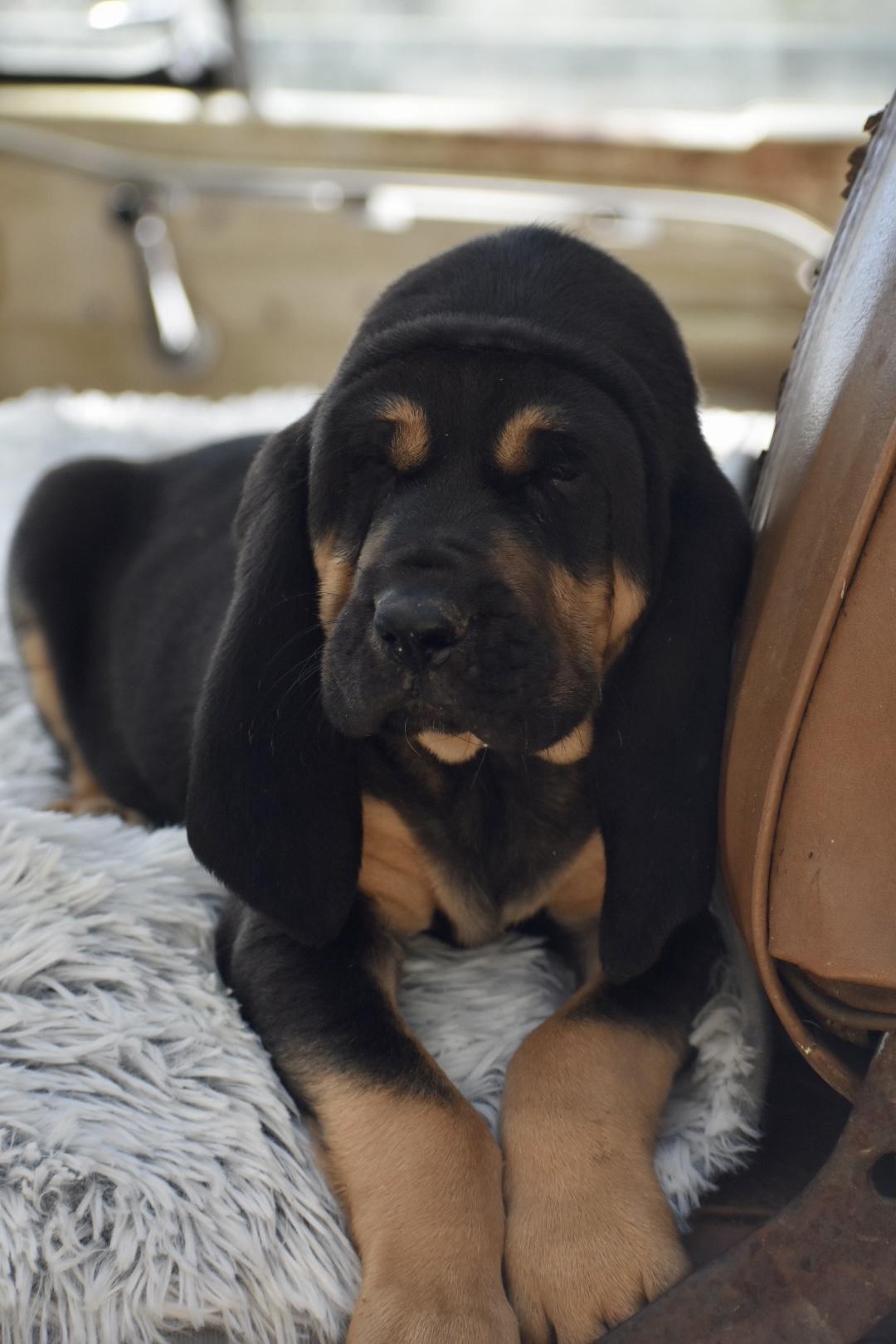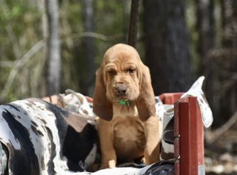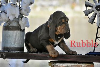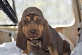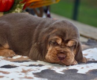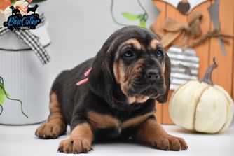 Bloodhound puppies include red, liver and tan, and black and tan. Colors will vary depending on the parent dogs.