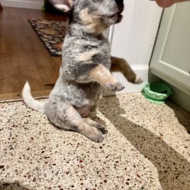 JC was delightful to work with and we are very happy with our little boy, Ash. She breeds amazing cattle dogs with wonderful dispositions. Ash is super sweet and obedient making raising a puppy a joy! We highly recommend JC, her breeding program is excellent!
