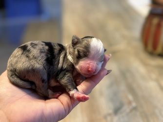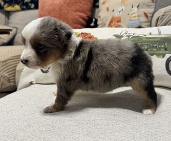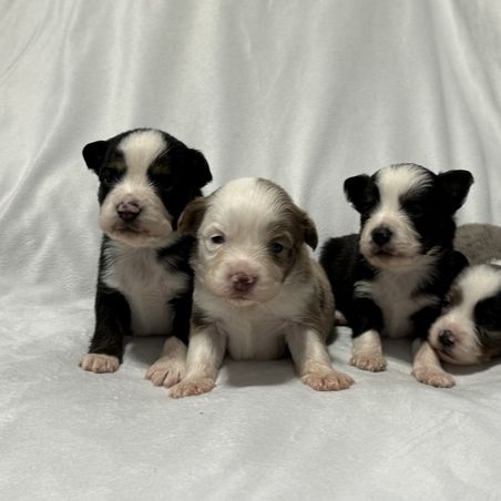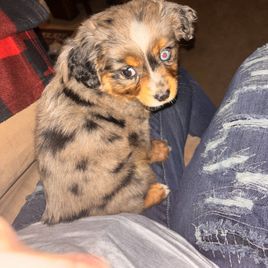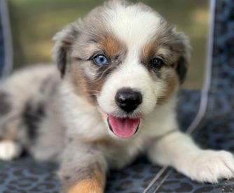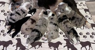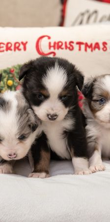 Our puppies include red merle, blue merle, and black tri-color. Colors will vary depending on the parent dogs.