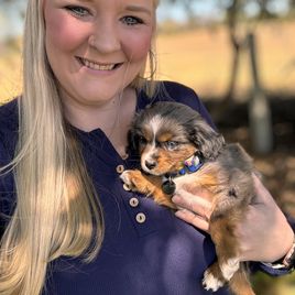 I'm Katie S., the breeder behind Blue Creek Farm located in Hogansville, GA. Our dogs are bred for health and temperament. All puppies are Vet checked prior to going to new homes. They are exposed to a variety of different animals, sounds, and experiences. Parents are Health Tested-Clear. All puppies are raised in our home/ farm around children, dogs, cats, and livestock.