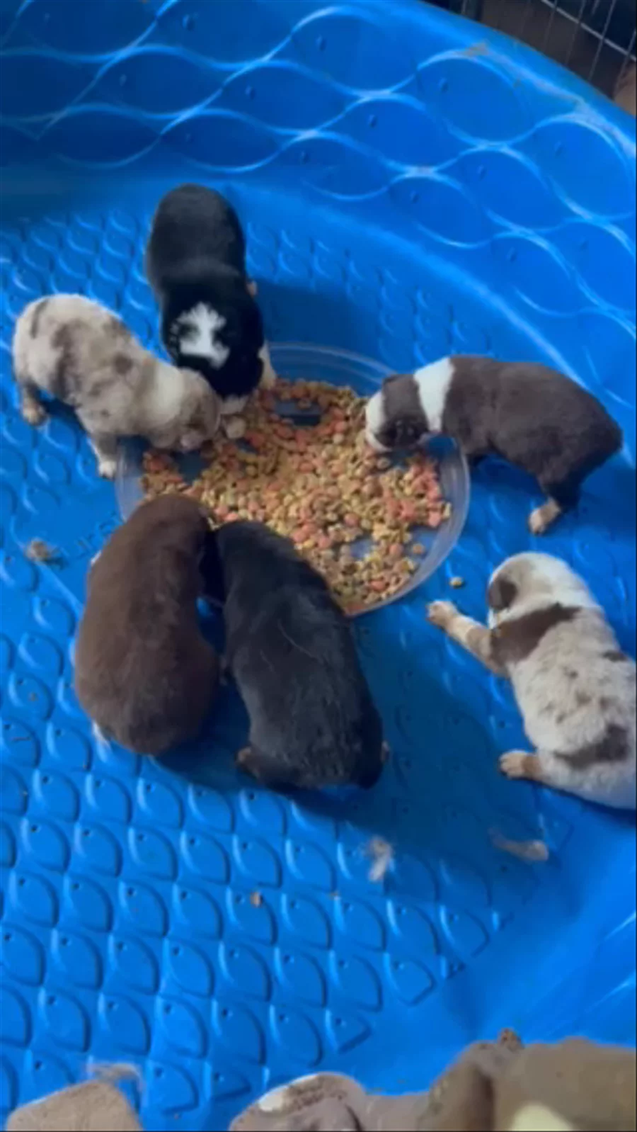 Our Australian Shepherd puppies include red & white, black & white, black, red merle, blue merle, red, black tri-color, and red tri-color. Border Collie puppies include slate merle, lilac merle, blue merle, red merle, black, blue, lilac, and red. Working Dog Cross puppies include black and black and tan. Colors will vary depending on the parent dogs.