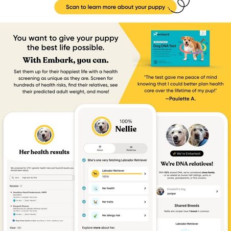 • DNA Coat/Trait Panel, DNA Disease Panel, Multiple Drug Sensitivity (MDR1), Animal Genetics Panel, Full Embark Panel