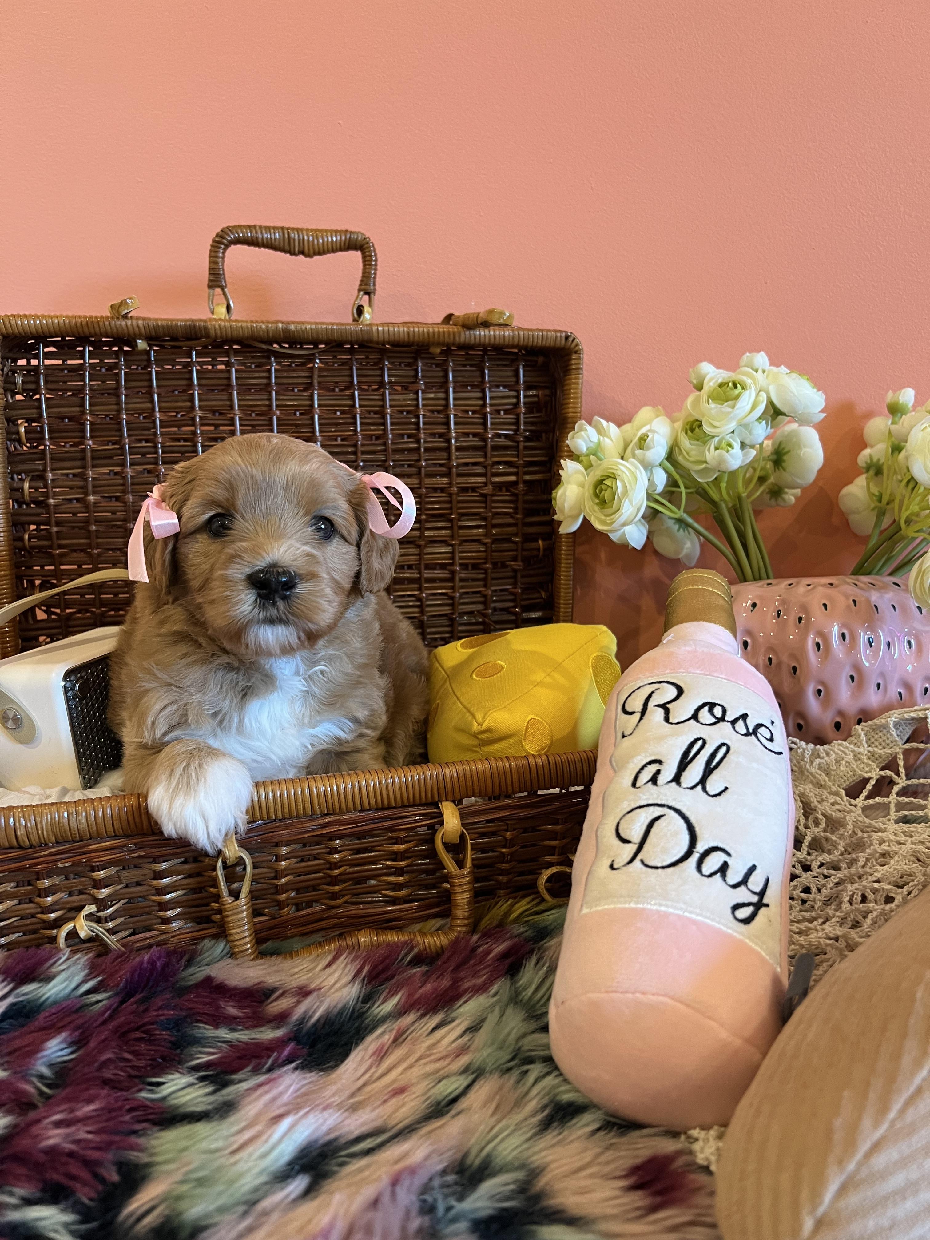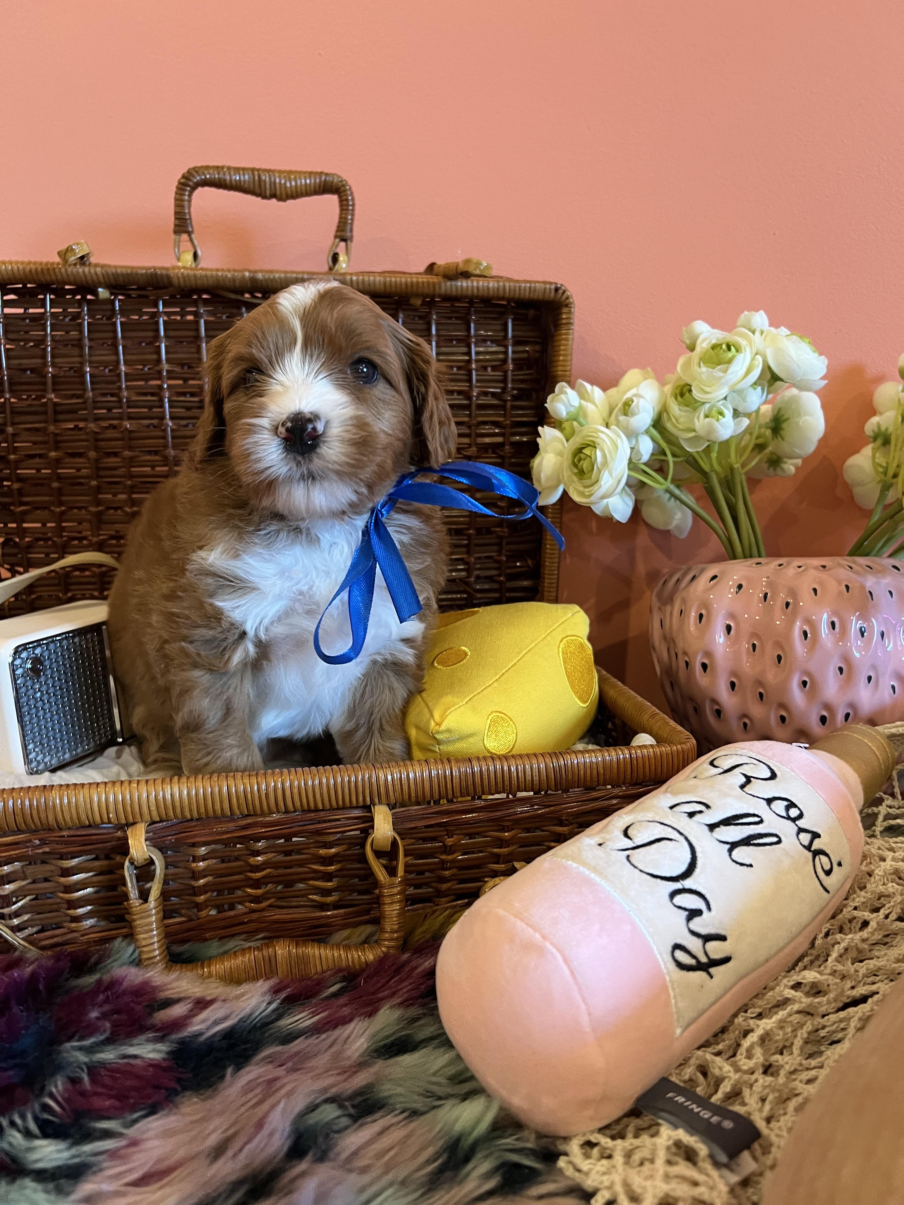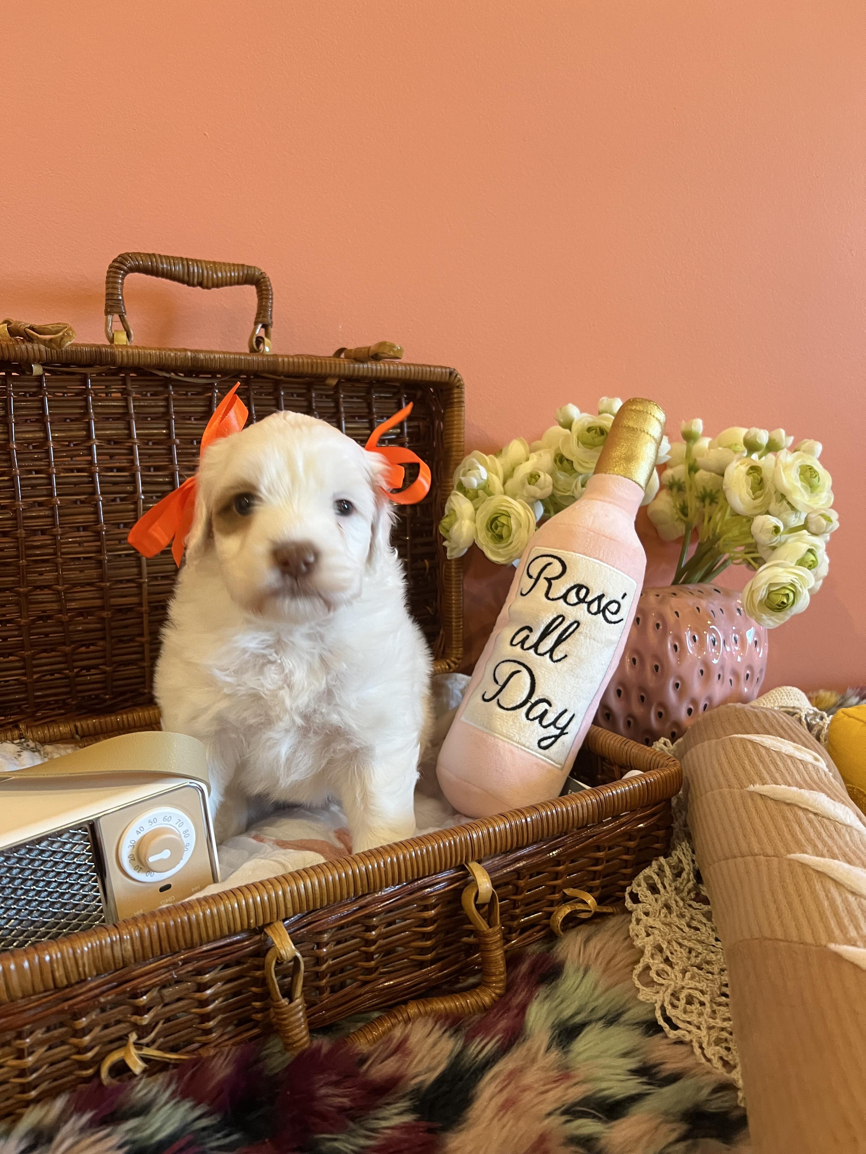“This price also includes the health guarantee, a clean bill of health by my vet before they go home to you, and a go home basket specially curated for your puppy! The deposit is to secure your spot on a specified litter.”