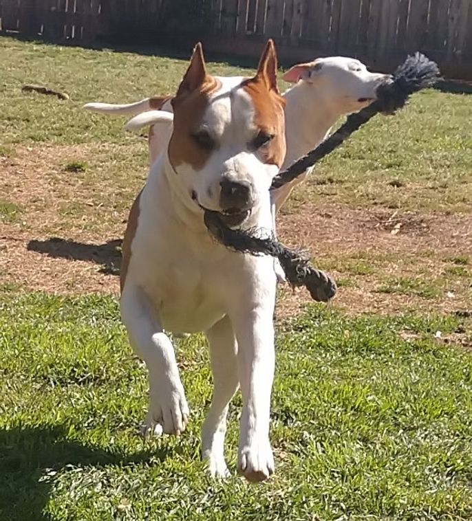 I began showing and trialing Australian Shepherds. I do not breed much at all. In 2019, I found some great breeders of amstaffs and staffys. I always work closely with mentors when making any breeding choices.