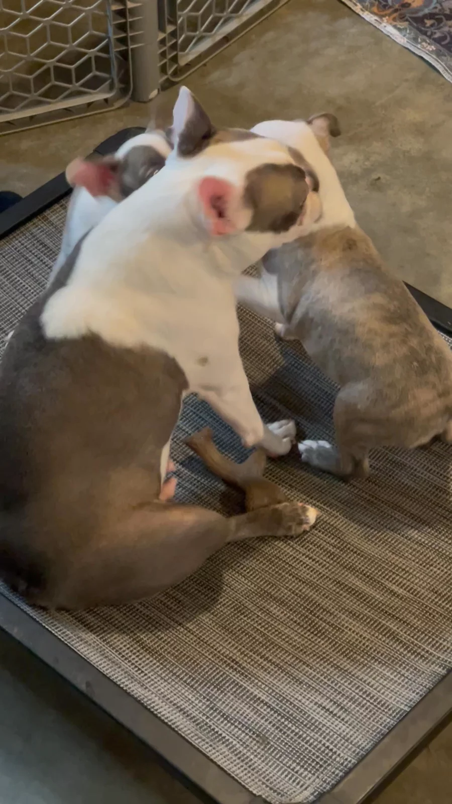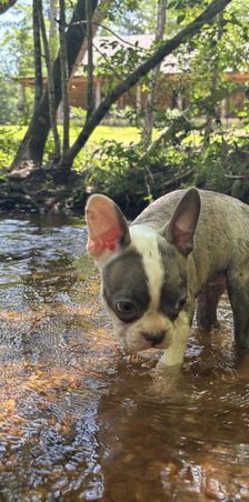 Bougie is a Frenchton with her percentage being 94% French Bulldog and 6% Boston Terrier. She is the fourth generation of this line I have raised. She is very social and gets along well with the other dogs in our program.