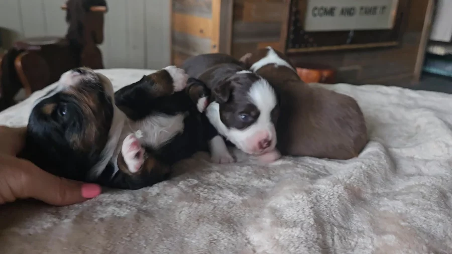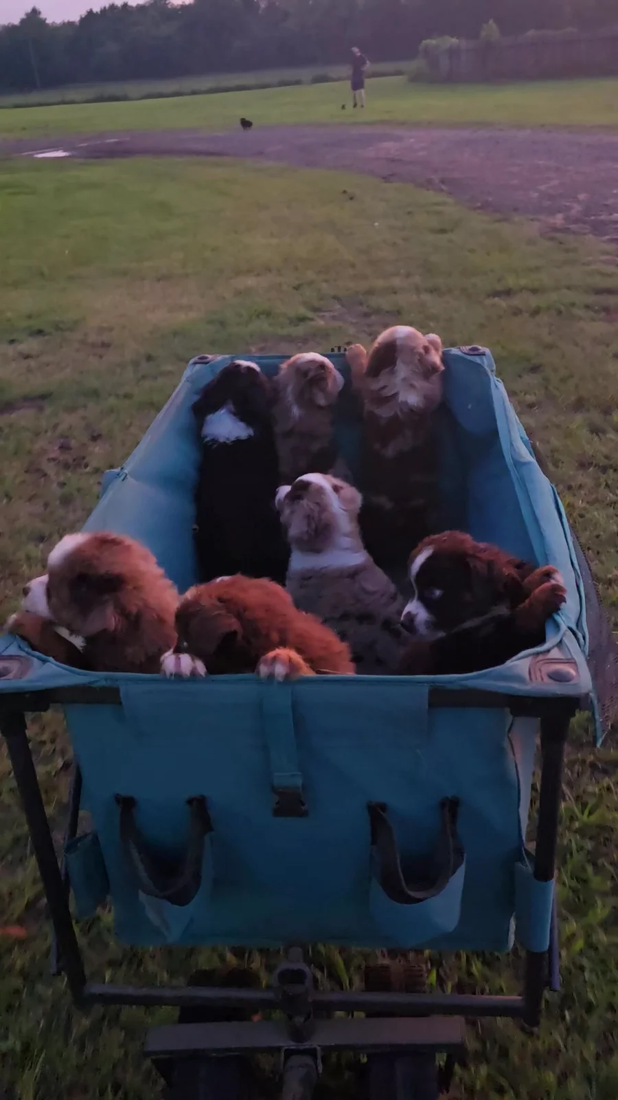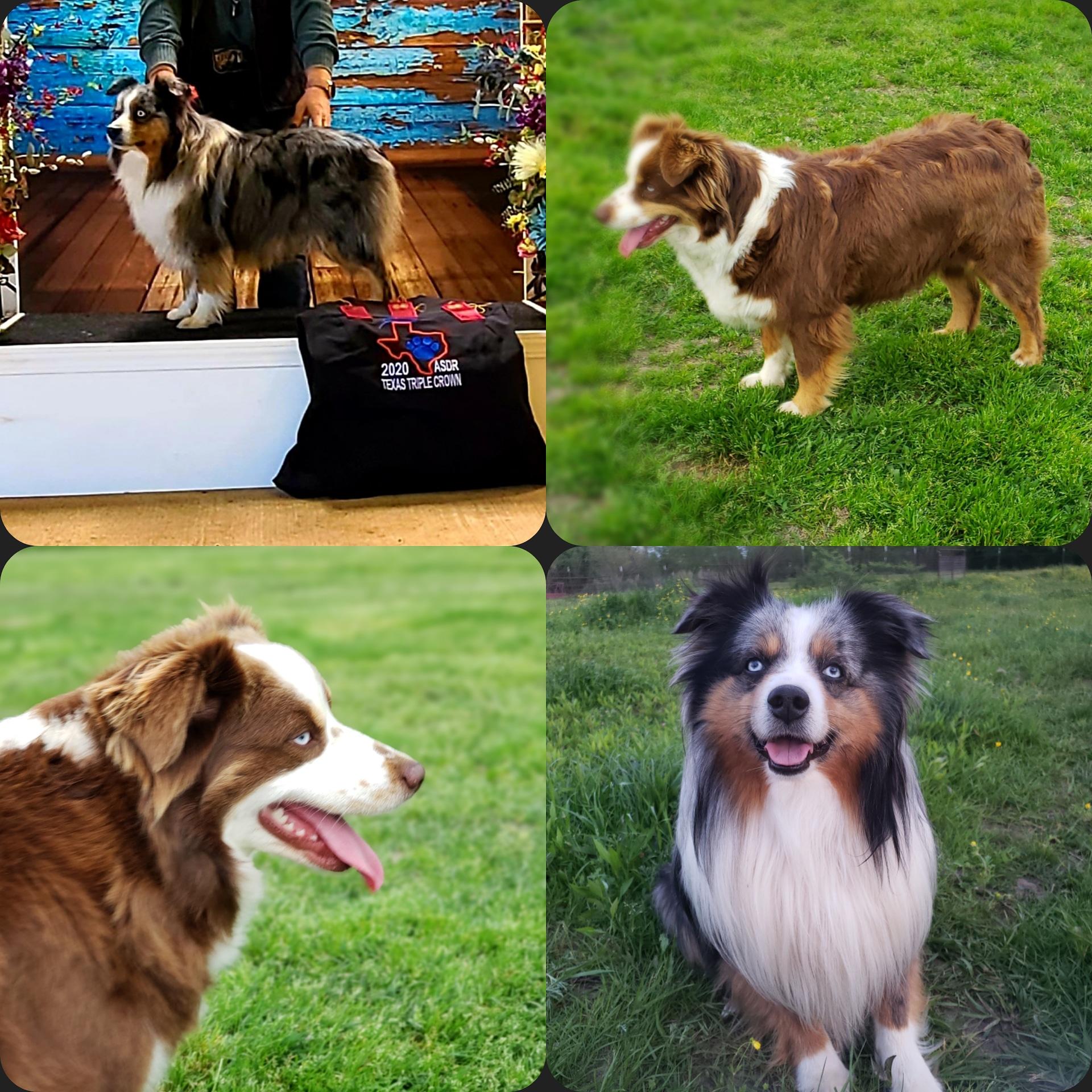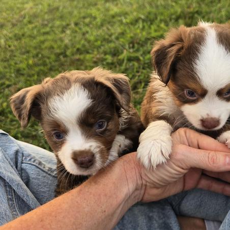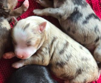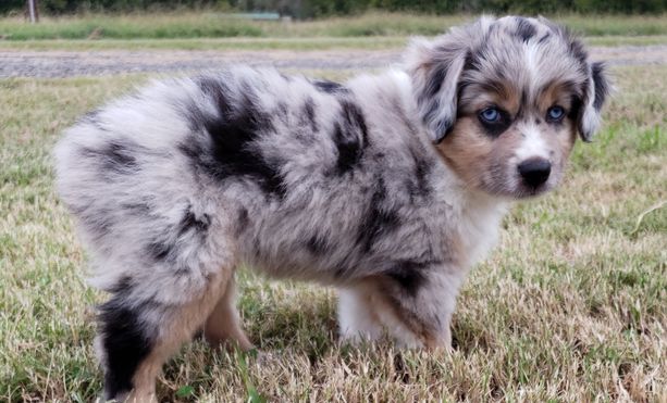 Our puppies include blue merle, red merle, red, and black. Colors will vary depending on the parent dogs.