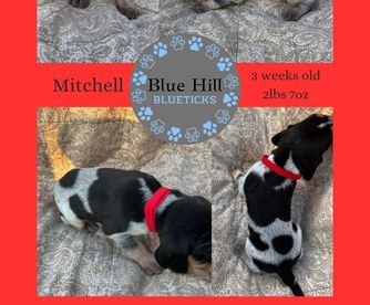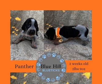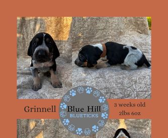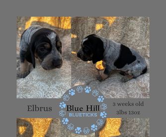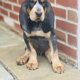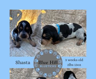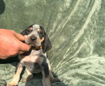 Our puppies are blue ticked and tan. Colors will vary depending on the parent dogs.