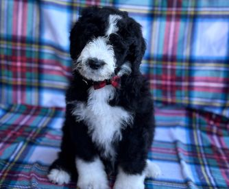 Our Cavapoo puppies include merle, cream, chocolate, brown, black, black and white, black and tan, and apricot. Sheepadoodle puppies include blue merle and black and white. Toy Australian Shepherd puppies include red & white, black & white, red, black tri, blue merle, red merle, and red tri. Miniature Australian Shepherd puppies include red & white, black & white, blue merle, black tri, red tri, red merle, and red. Aussiedoodle puppies include brown and white, blue merle, red merle, black phantom, black and white, black tri-color, red phantom, and red tri-color. Colors will vary depending on the parent dogs.
