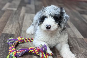 Our Cavapoo puppies are toy size. Sheepadoodle puppies are standard size. Miniature Australian Shepherd puppies include tiny and miniature sizes. Aussiedoodle puppies include toy and mini sizes. Sizes will vary depending on the parent dogs.
