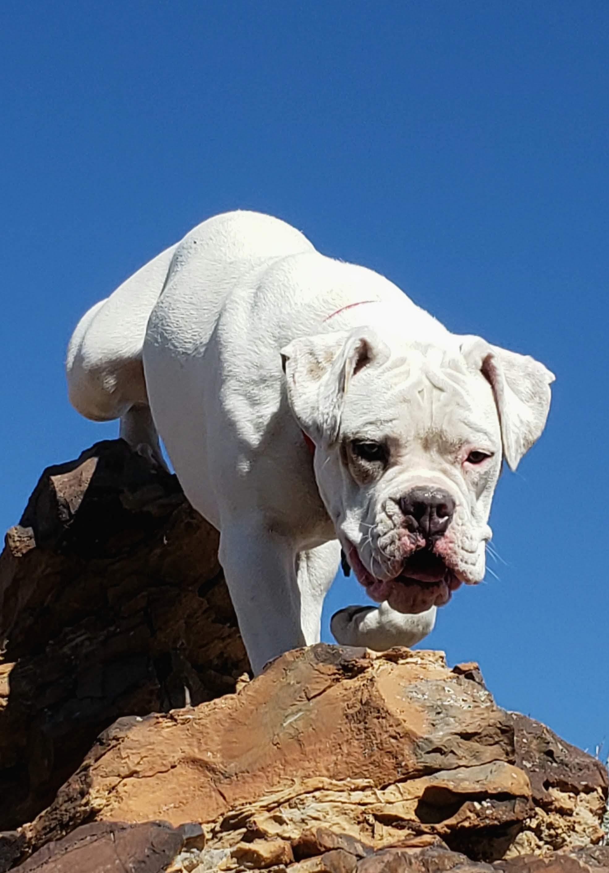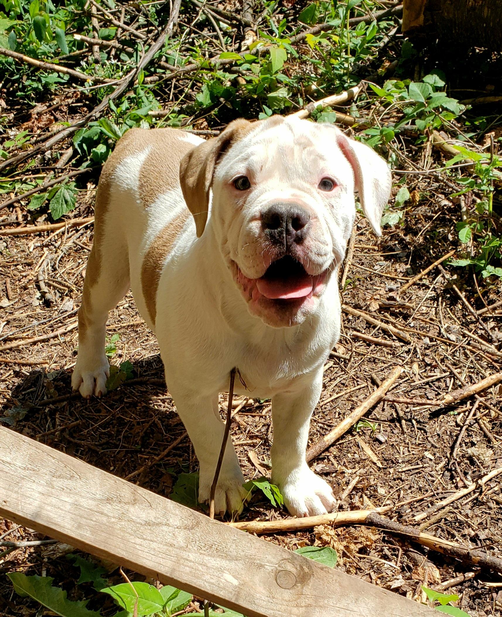 DD is a female Olde English Bulldogge. Carefully selected as a great representative of her breed, Ronald decided to make her part of their program. Ronald has passed Good Dog’s screening process, which involved a review of their breeding practices, environment, and the mental and physical health of their dogs.