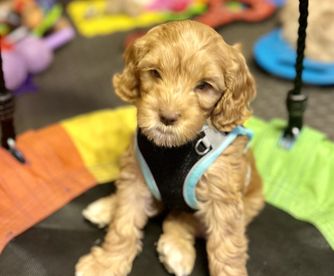 Our puppies include caramel cream, caramel, caramel red, apricot, and chocolate. Colors will vary depending on the parent dogs.