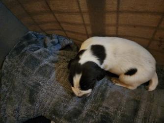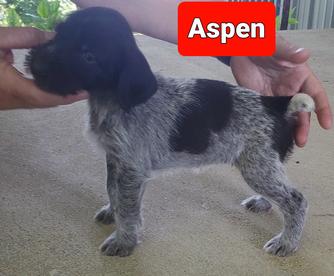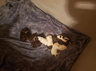 Our puppies include black and white and liver and white. Colors will vary depending on the parent dogs.