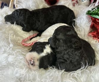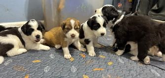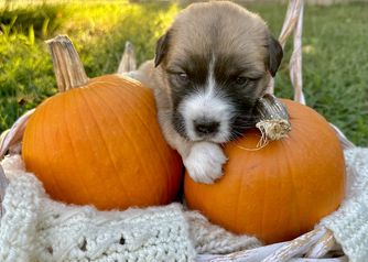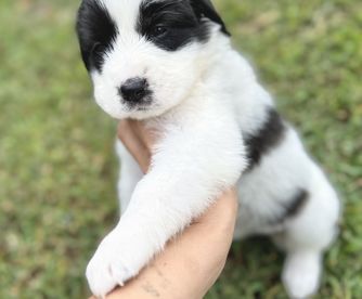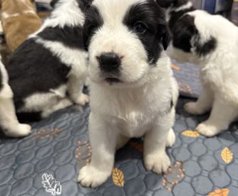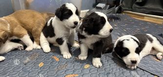 Our Caucasian Shepherd Dog puppies include white, gray, sable, and black and gray. Labradoodle puppies are tri-color. Saint Bernard puppies include orange and white, brindle and white, and brown and white. Colors will vary depending on the parent dogs.