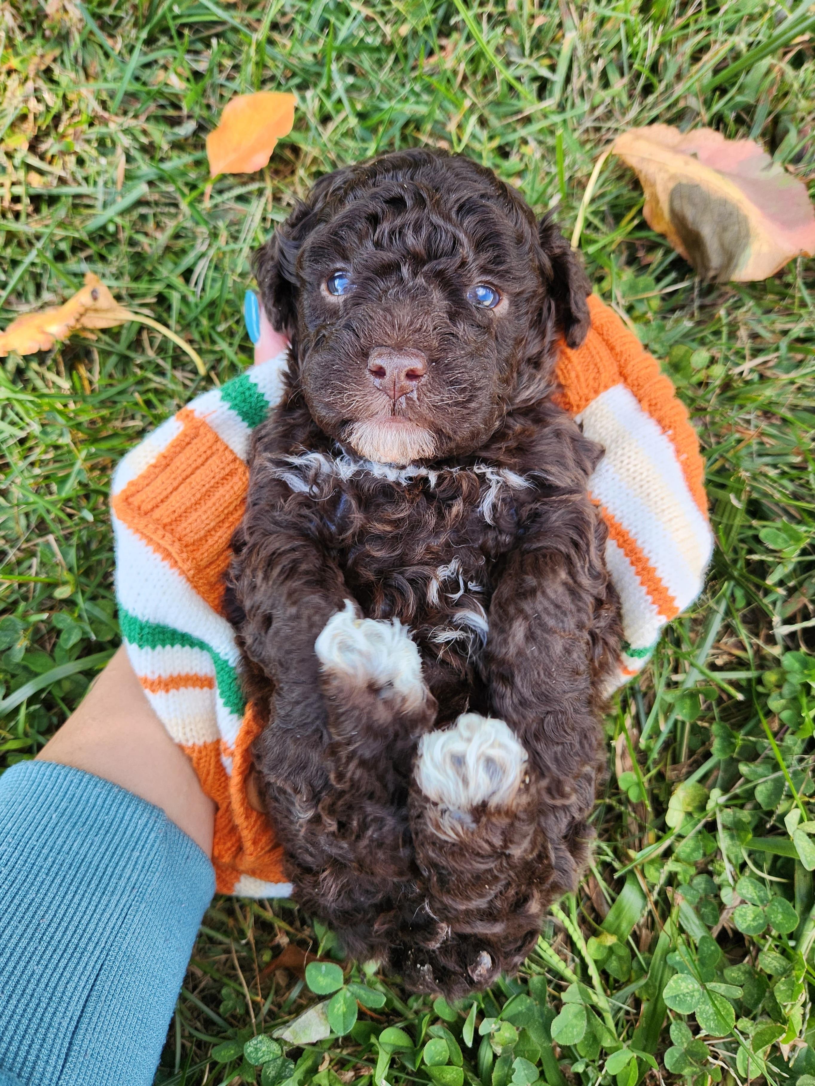 Birdie is a stunning 50% Poodle and 50% Cavalier — a true classic Cavapoo beauty. Her soft, wavy coat makes her absolutely gorgeous, but it’s her personality that shines the brightest. Calm, intelligent, and so loving, Birdie is the kind of dog who melts hearts wherever she goes. She’s smart, easygoing, and such a joy to be around.